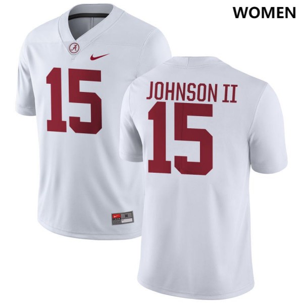 Roll Tide with Authentic Greatness: Alabama Duke Johnson II Women White #15 NCAA Football Jersey - Game Day Ready Performance Fit 93258063