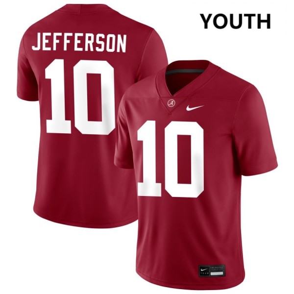 Authentic guaranteed! The Exquisitely Embroidered Alabama Crimson Tide #10 Justin Jefferson Crimson Youth Authentic Football Jersey - NCAA Licensed & Trusted 37380818 is the ultimate choice for Alabama Crimson Tide fans. Premium materials and classic team colors, you cant go wrong with it on Game Day. Roll Tide glory belongs on your back!