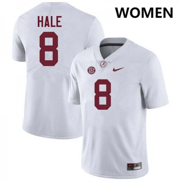 • Official Product: Original #8 Jalen Hale Crimson Tide White Women Stitched Football Jersey - NCAA Compliant & Fan-Approved 18590438